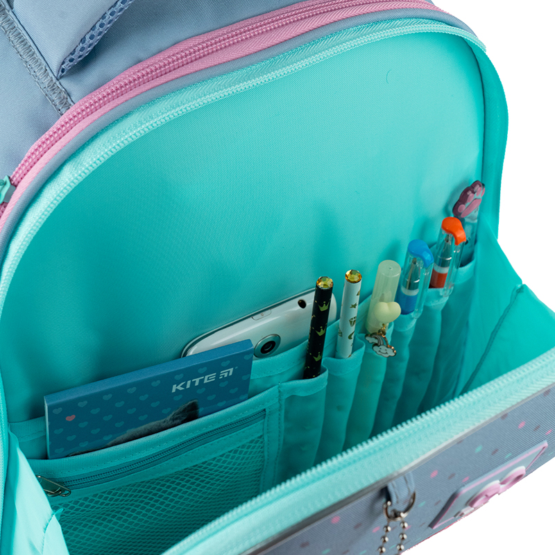 Напівкаркасна конструкція забезпечує легкість рюкзака, а також допомагає тримати форму, що робить його дуже зручним для щоденного використання. В рюкзаку легко зберігати порядок — канцтовари та книги не мнуться і завжди залишаються на своїх місцях. Жорстка передня панель надійно тримає форму та захищає вміст рюкзака, а м’які боковинки роблять рюкзак полегшеним. З ним дитині буде легко підтримувати канцелярію в охайному вигляді, а батькам — бути спокійними за комфорт і здоров’я малечі.