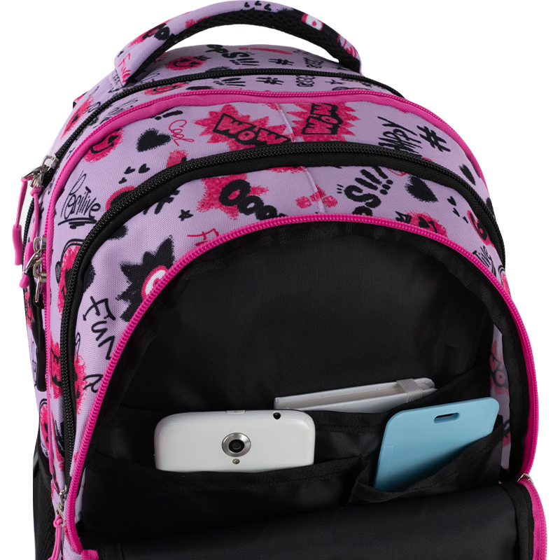 - 3 місткі відділення на блискавці для зошитів, підручників, канцелярії та купи інших речей.