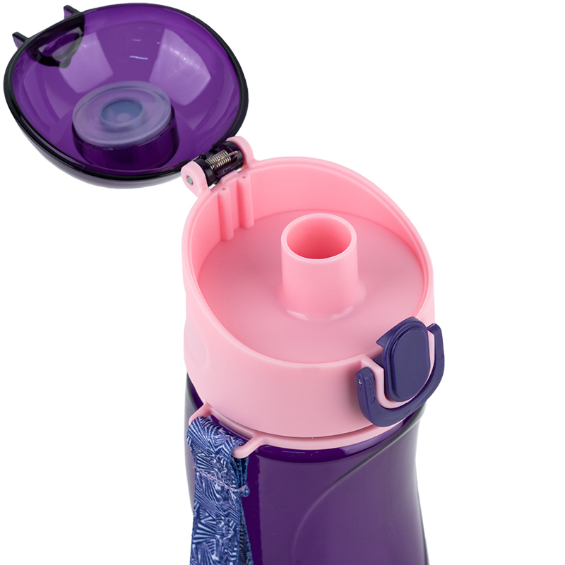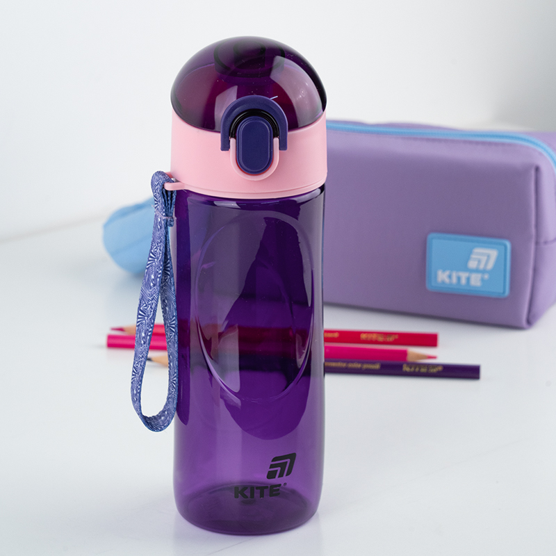 Пляшечка для води Kite K25-400-4 – тендітна, витончена та по-справжньому особлива. Має незвичайну форму, яка ефектно виглядає та зручно лягає у руку. Легко та надійно закривається кнопкою з фіксатором та має лаконічну ручку-стрічку.