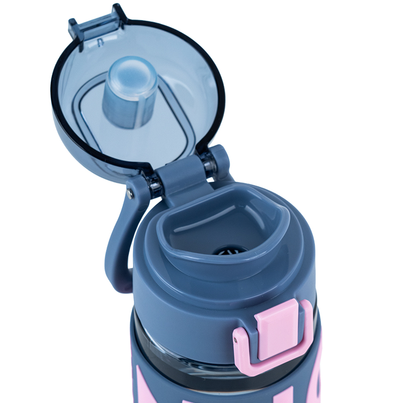 Завдяки об’єму 550 мл вона ідеально підходить для школи, тренувань або прогулянок. Матеріал — міцний та безпечний тритан, що не містить бісфенолу-А. Надійна кришка з кнопкою захищає від протікань і легко відкривається навіть однією рукою. А силіконова вставка на корпусі запобігає ковзанню в руці — зручно, навіть коли поспішаєш.