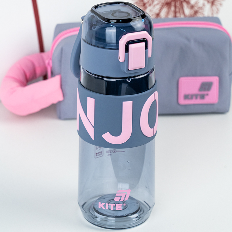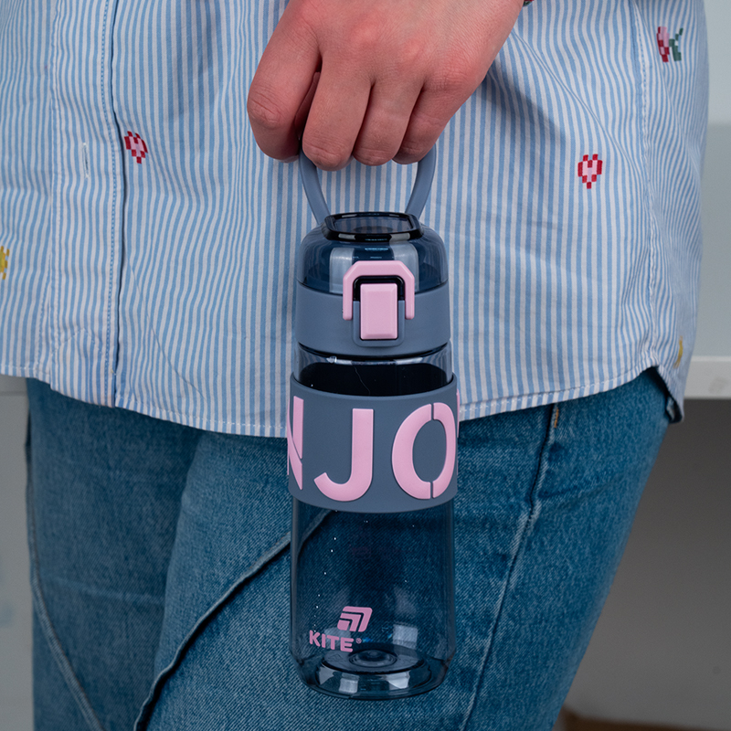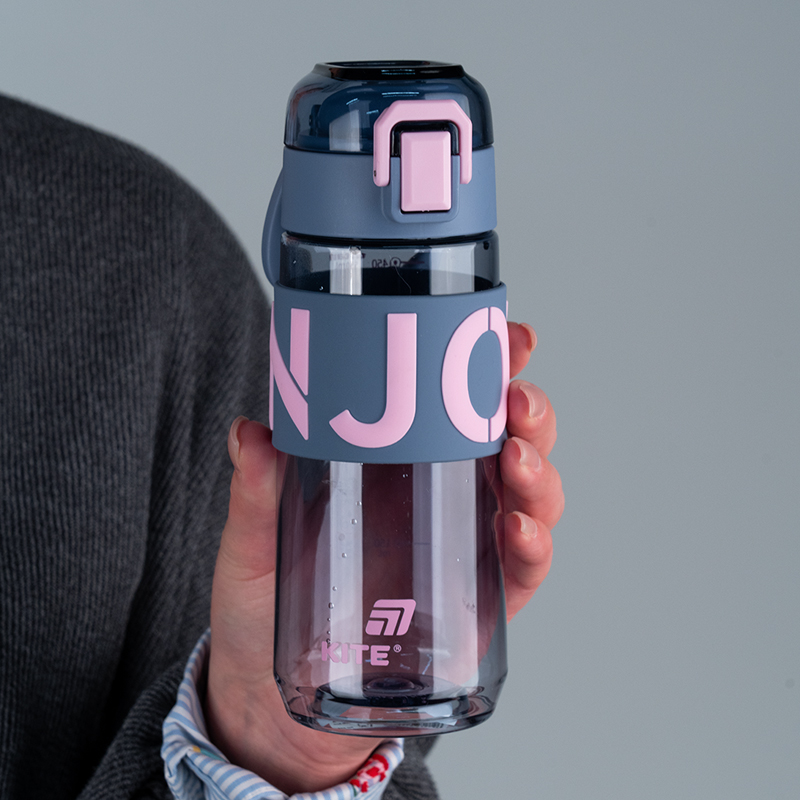 Пляшечка для води Kite K25-1232-2 550 мл — стильна, зручна та функціональна. Лаконічний корпус із великим написом ENJOY не просто привертає увагу — він заряджає позитивом. Така пляшка пасуватиме під усе: рюкзак, сумку, стиль дня.