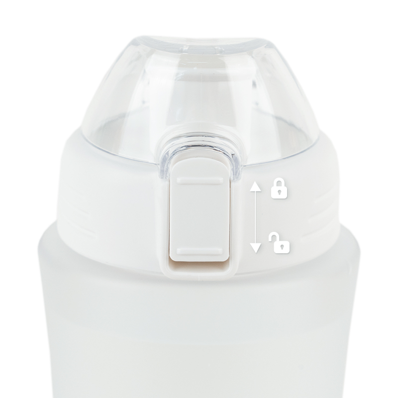 Механізм відкриття працює одним натисканням кнопки — зручно навіть у русі. Кришка має надійний фіксатор, щоб не відкрилася випадково у рюкзаку. Герметичність забезпечує повну впевненість, а завдяки широкому отвору пляшку легко мити й наповнювати. Вона стане чудовим супутником для активного дня.