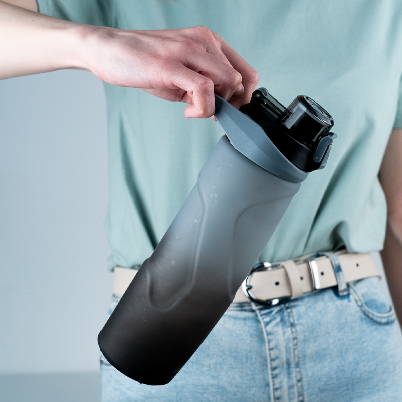 Кришечка надійно закривається, не даючи воді проливатися, а також захищає мундштук від забруднень. Фіксатор блокує кришечку, захищаючи від мимовільного відкриття.