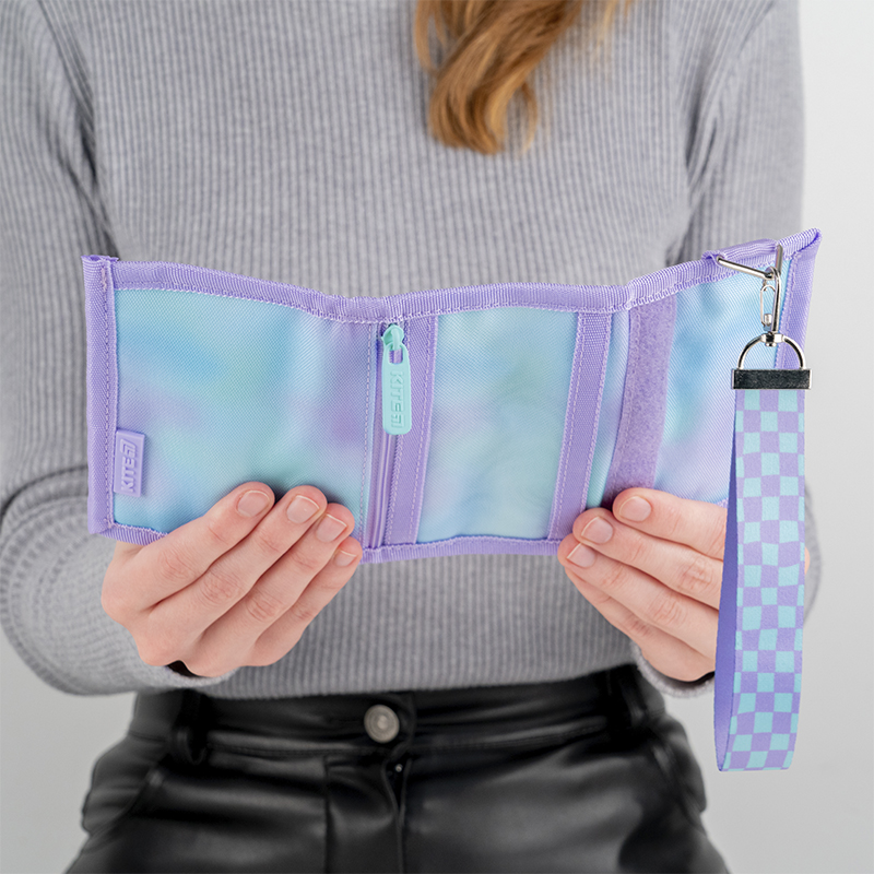 Гаманець легенький, компактний та дуже місткий. Містить 1 основне відділення, 1 внутрішня кишеня на липучці для дрібниць, відділення для карток, металеве кільце для ключів та зовнішня сітчаста кишеня на блискавці. З такою кількістю функціональних кишеньок порядок гарантований!