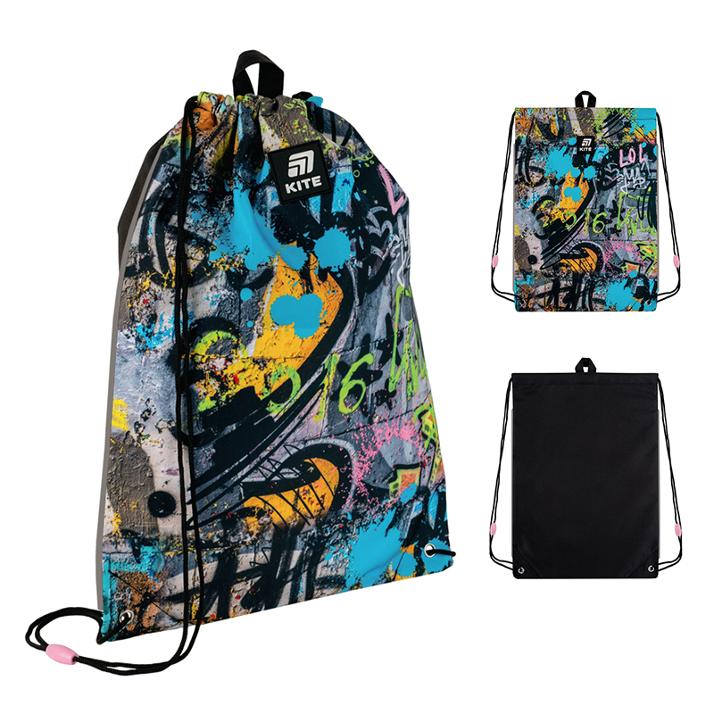 Простота у використанні. Закривається та відкривається одним рухом. З двох сторін затягується шнурками та перетворюється на міні-рюкзачок, який можна носити за спиною чи на плечі. Для зручності передбачена петля для підвішування сумки на гачок або вішалку.