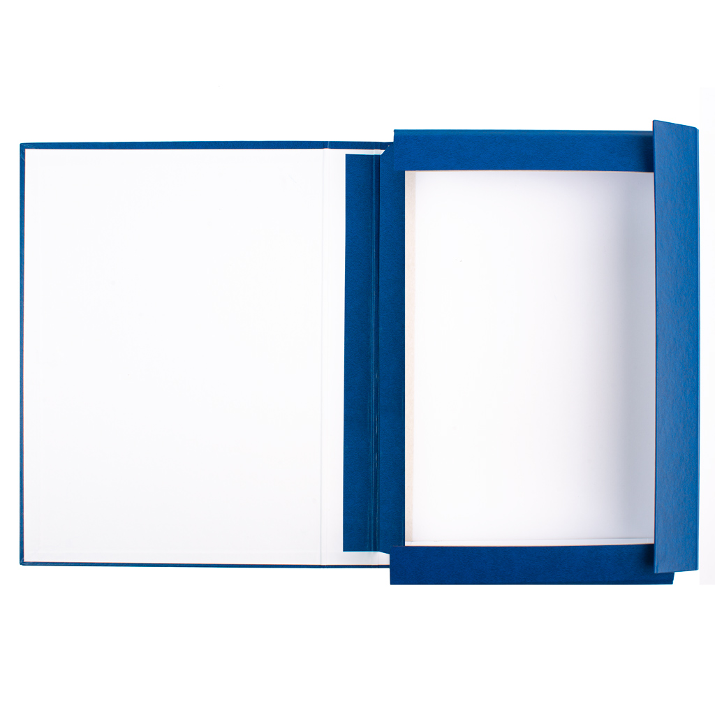 Папка-бокс архівна нотаріуса з титулкою з клапаном, з палітурного картону, обклеєного синім баладеком. На обкладинці папки титульний аркуш згідно з додатком 39 до Правил. Розмір папки 23х32см, товщина корінця 4см.