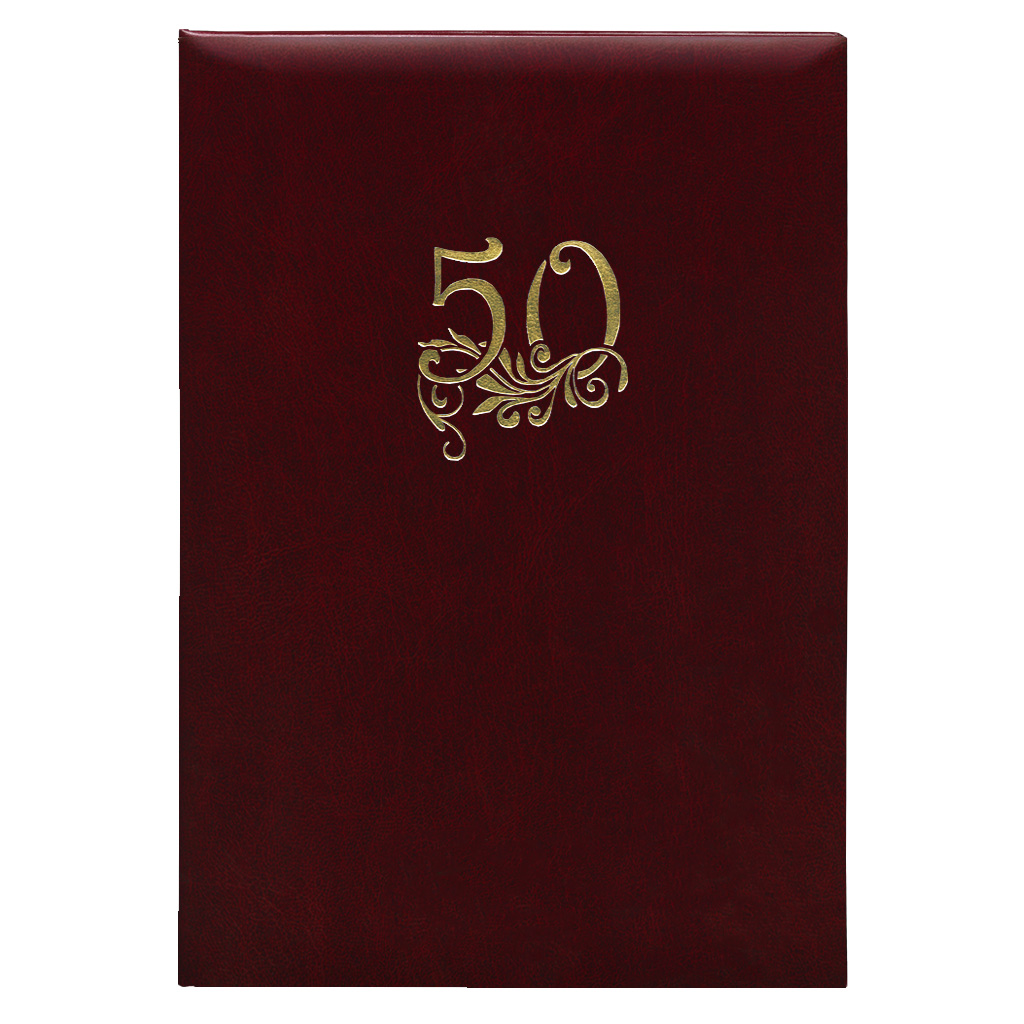 Папка адресна, формат 220х320 мм, обкладинка тверда з поролоном, покривний матеріал баладек, виклейка та вкладиш білий офсетний папір, тиснення фольгою "50 років" Продукція може відрізнятися відтінком в залежності від партії виготовлення.