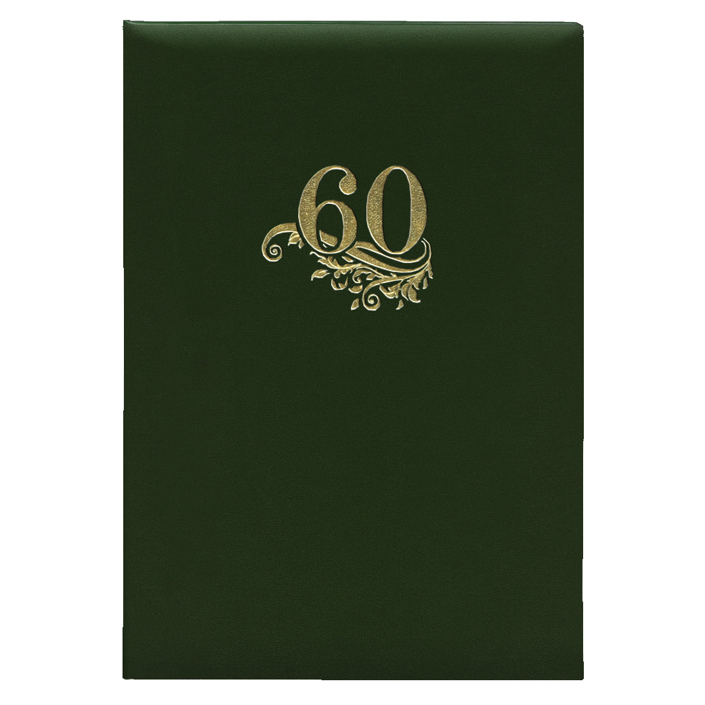 Папка адресна, формат 220х320 мм, обкладинка тверда з поролоном, покривний матеріал баладек, виклейка та вкладиш білий офсетний папір, тиснення фольгою "60 років" Продукція може відрізнятися відтінком в залежності від партії виготовлення.