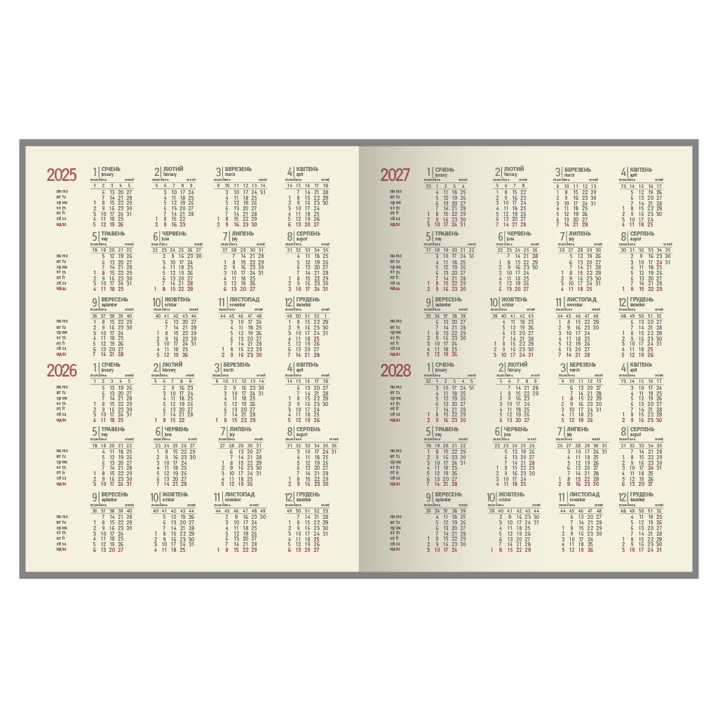 Блок тижневика недатованого. Формат 203х260 мм. Кількість сторінок 160, кремовий офсет 70г/м2 в лінію. Без капталу та лясе. Мова укр., англ. Форзац/нахзац - кольорові мапи України, Європи.Інформаційний блок містить:-Валюти країн світу-Часові пояси-Відстані між європейськими містами та між обласними центрами України-Телефонні коди міст України-Міжнародні телефонні коди-Довідкові телефони-Автомобільні коди країни-Міжнародні штрихові коди-Офіційні правила тлумачення торгівельних термінів міжнародної торгової палати Інкотермс 2020-Позначення країн та територій в Інтернеті-Одиниці для вимірювання фізичних величин-Правила догляду за одягом та знаки на етикетці-Розміри одягу та взуттяЗа додаткову оплату ви можете замовити наступні опції:-приклеювання капталу та лясе-кругління кутів блоку-перфорація кутів блоку-окрас торців блоку-вклейки або додаткові зошити повнокольорові за вашим макетом-форзац/нахзац повнокольорові за вашим макетом або з дизайнерського паперу