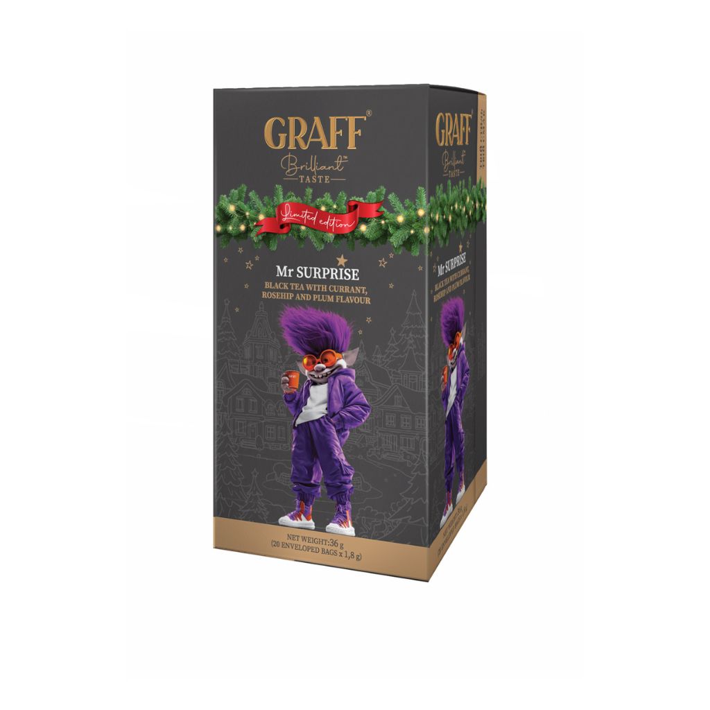 Опис Чай чорний GRAFF Mr Surprise 1,8гх20шт з смородиною, шипшиною та ароматом сливи