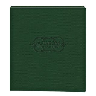Опис Альбом для банкнот (20 куліс, 200х250 мм), обкладинка штучна шкіра, зелений