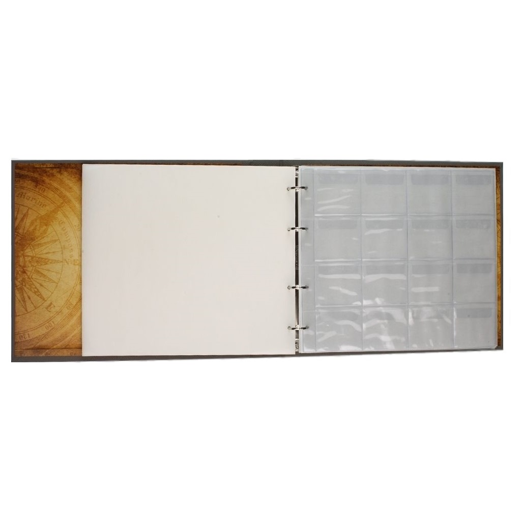 Альбом для монет зелений в асортименті. Обкладинка: покривка штучна шкіра, сторонки картон палітурний з поролоном. Блок складається з 3х куліс на 36 секцій 30х30мм та 2х куліс на 16 секцій 50х50мм. Між кулісами перекладки з пергаменту. Скріплення - кільцевий механізм. Є можливість додавати куліси.