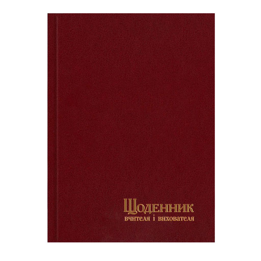 Щоденник вчителя і вихователя. Формат 145х202 мм, 112 аркушів, блок білий офсет 70 г/м2 лінія, обкладинка баладек.Зміст: Особові дані, розклад уроків, щоденник, важливі дати, журнал успішності учнів класу, адреса учнів, довідка про батьків, нотатки.