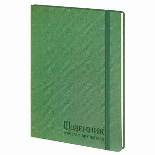 Опис Щоденник вчителя і вихователя А5, штучна шкіра, на гумці, зелений